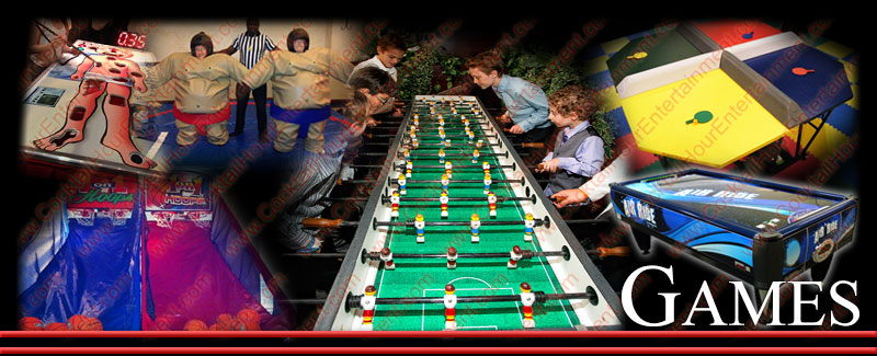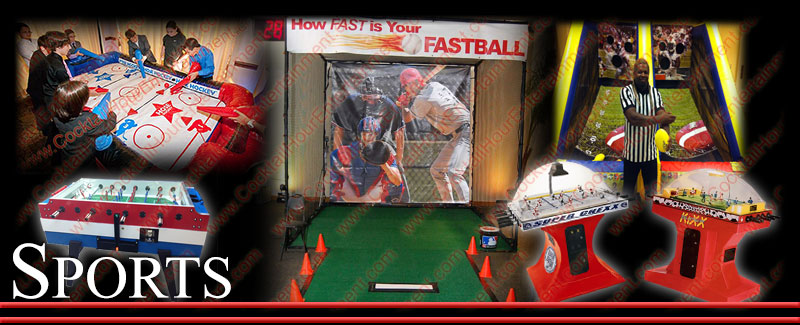 We provide Airbrush Party Favors (AirBrush Shirts, AirBrush Pillows, AirBrush Boxers, AirBrush Hats, etc....), Arcade Games, Arcade Machines, AirBrush Tattoo Artists, Air Hockey Tables, Baseball Speed Pitch, Basketball Pop-A-Shot, Bead Factory, Black Jack Tables, Bling Station, Bubble Hockey, Bubble Soccer, Caricaturist, Digital Caricaturist, Carnival Games, Casino Tables, Circus, Claw Machine, Cotton Candy, Craps Table, DDR Dance Dance Revolution, Dance Heads (Boogie Bodies/ Pop Noggins), Dog Tags, Photo Dog Tags, Fantasy/Fake I.D. Cards, Feather Extensions, Flip Books, Foosball, Foam Dance Pit, Football Toss, Fun Foods, Giant Board Games, Giant Operation, Giant Twister, Glitter Tattoos, Golf Challenge, Graffiti, Green Screen Photos, Guitar Hero, Gyroscope, Hair Feathers, Hair Tinsel, Hollywood Photos (Red Carpet Photos), Hose Hockey, Jukebox Rental, Magazine Covers, Money Machine, Movie Posters, Multicade, Pinball Machines, Phone Cases, Photo Booths, Photo Favors (Photo Novelties & Green Screen), Photo Keychains, Ping Pong & Ping Pong Table (4-Player), Poker Tables, Pool Table, Popcorn Machine, Prize Wheel, Pucker Powder (Sandy Candy), Rice Jewelry, Rock Band, Rope Ladder Climb, Roulette Wheel, Skill Crane, Sky Dancer, Slot Car Racing, Slotless Car Racing (Microreality), Soft Pretzels, Sno Kones, Sport Games, Sublimation Favors, Surfboard Simulator (RoboSurfer), Sumo Suits, Tattoos, Velcro Wall, Video Game Systems, Wax Hands, Xbox Arcade, and much more!