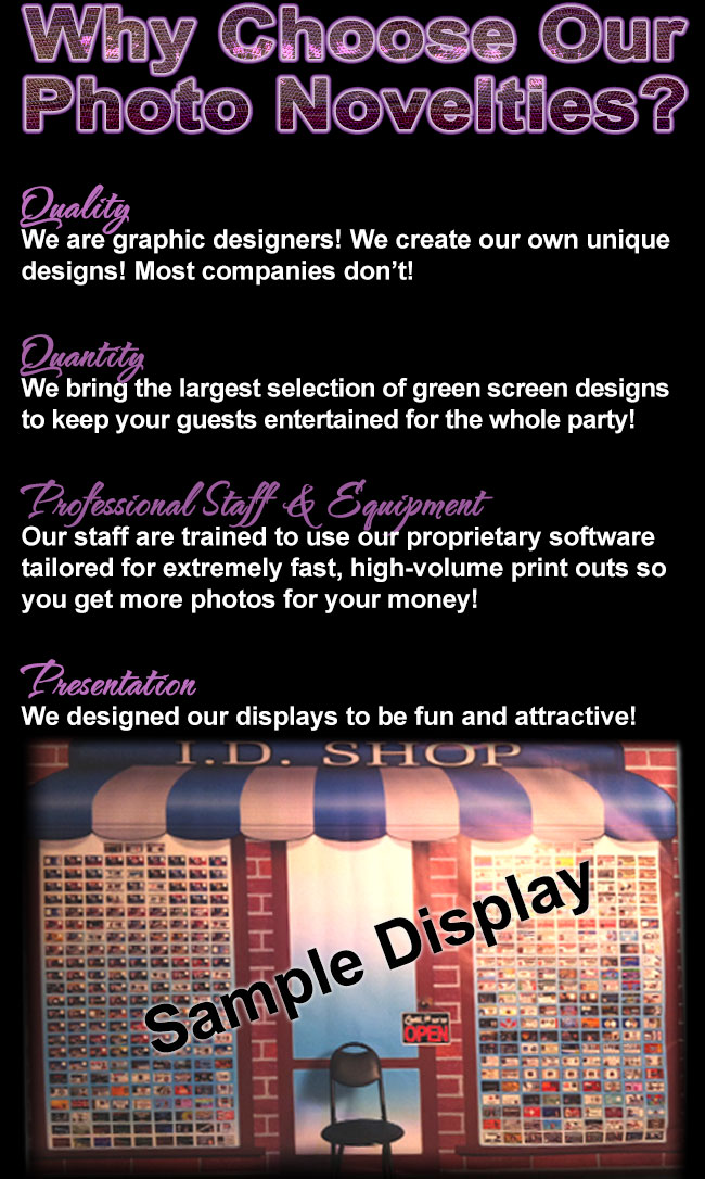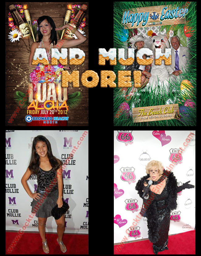 We provide Airbrush Party Favors (AirBrush Shirts, AirBrush Pillows, AirBrush Boxers, AirBrush Hats, etc....), AirBrush Tattoo Artists, Air Hockey Tables, Attitude Hats, Baseball Speed Pitch, Basketball Pop-A-Shot, Bead Factory, Bling Station, Bubble Hockey, Bungee Run, Candy Cart, Caricaturist, Carnival Games, Casino Tables, Coldstone Ice Cream, Cotton Candy, Dance Dance Revolution, Dance Heads (Boogie Bodies/ Pop Noggins), Dippin Dots, Dog Tags & Keychains, Fantasy/Fake I.D. Cards, Flip Books, Flip Flop Shop (Sandal Art), Foosball, Foam Dance Pit, Football Toss, Fun Foods, Giant Board Games, Giant Twister, Glitter Tattoos, Goldfish Racing, Golf Challenge, Green Screen Photos, Guitar Hero, Gyroscope, Hermit Crab Racing, Hollywood Photos (Red Carpet Photos), Hose Hockey, Jukebox Rental, Magazine Covers, Mechanical Bull, Money Machine, Movie Posters, Pinball Machines, Photo Booths, Photo Favors (Photo Novelties & Green Screen), Ping Pong & Ping Pong Table (4-Player), Poker Tables, Pool Table, Pool Table Golf, Popcorn Machine, Prize Wheel, Pucker Powder (Sandy Candy), Rice Jewelry, Rock Band, Rope Ladder Climb, Skill Crane, Sky Dancer, Slot Car Racing, Slotless Car Racing Systems (Microreality), Sno Kones, SnowBoard Simulator, Surfboard Simulator (RoboSurfer), Sumo Suits, Velcro Wall, Video Game Systems, Wax Hands, and much more!